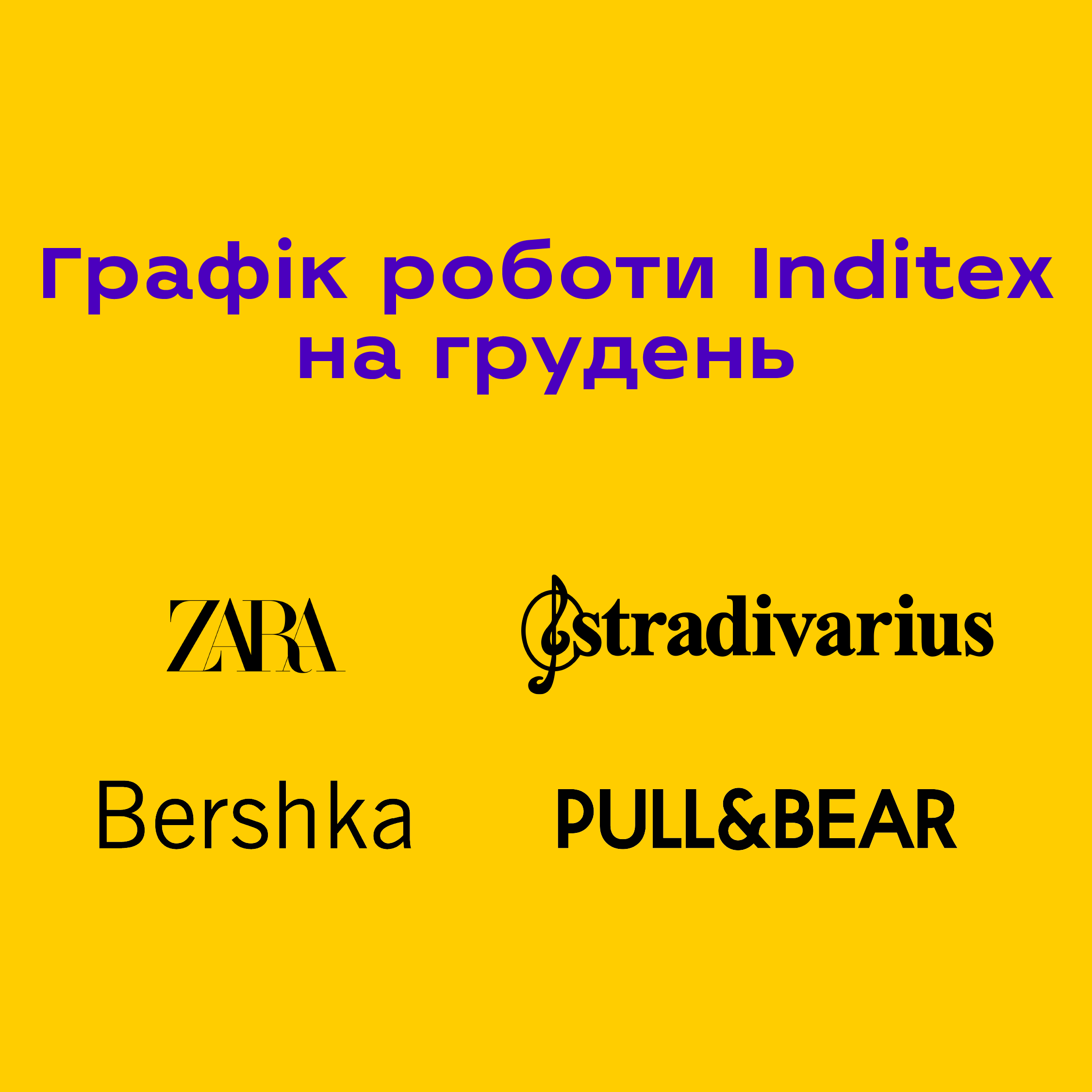 Графік роботи Inditex на грудень